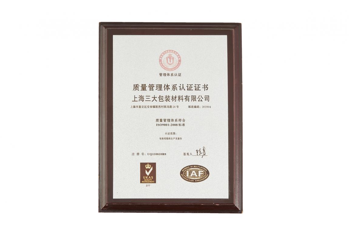 三大獲得ISO9001管理認證體系